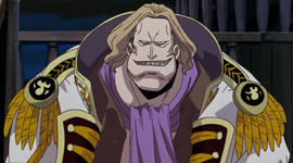 I don't tend to like characters like him that are introduced as a cool dude and is nothing but a cool dude, but the 'Pirate Executioner' Shuraiya Bascud ends up fighting against and then alongside Luffy early on in the movie in a pretty fun bar brawl scene, and we later learn that Shuraiya has entered the huge Dead End Race to hunt down Gasparde out of revenge. We later learn that he's not just a soulless bounty hunter, but driven to take out Gasparde to avenge a childhood tragedy where Gasparde turns out to have killed his family, and it's pretty unnerving to see Shuraiya portrayed as basically being near-suicidal in his hunt for Gasparde, not caring who he takes out and whether he dies in the mission.