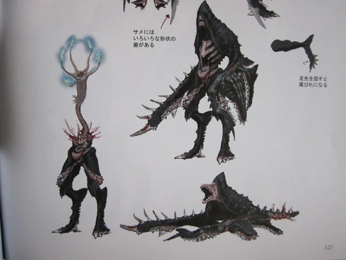 Taken from yet another named demon in Dante's Divine Comedy (which was made famous because Scarmiglione also lends its name to a recurring Final Fantasy monster), the Scarmiglione ends up being one of the most powerful non-boss T-Abyss creatures. It seems like we went through the bestiary pretty quick, although I feel like this game does hit that neat spot similar to Resident Evils 2 through 4 of having just the right amount of variety without oversaturating the monster pool. The Scarmiglione is apparently a T-Abyss mutant that also has shark DNA tossed into it just because.
