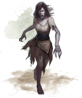 Described in both Monster Manuals are the Vampire Spawn, standing at a CR 5, and are meant to represent newly-created vampires that are still a bit more feral and consumed by their thirst for blood. Both versions show their respective Spawns to have glowing eyes and a more feral expression, and again, this serves a nice little piece in fantasy vampire lore, of the new convert – not quite human, not quite a lesser undead like a ghoul, but slowly transforming into the intelligent monster that is the full Vampire. In 5E, Spawns are still under a control of their 'parent' Vampire, and only by drawing blood from the parent can the Spawn transform into a fully-fledged Vampire. This is something that is noted to be rare, due to the fact that the parent Vampire would relinquish control.